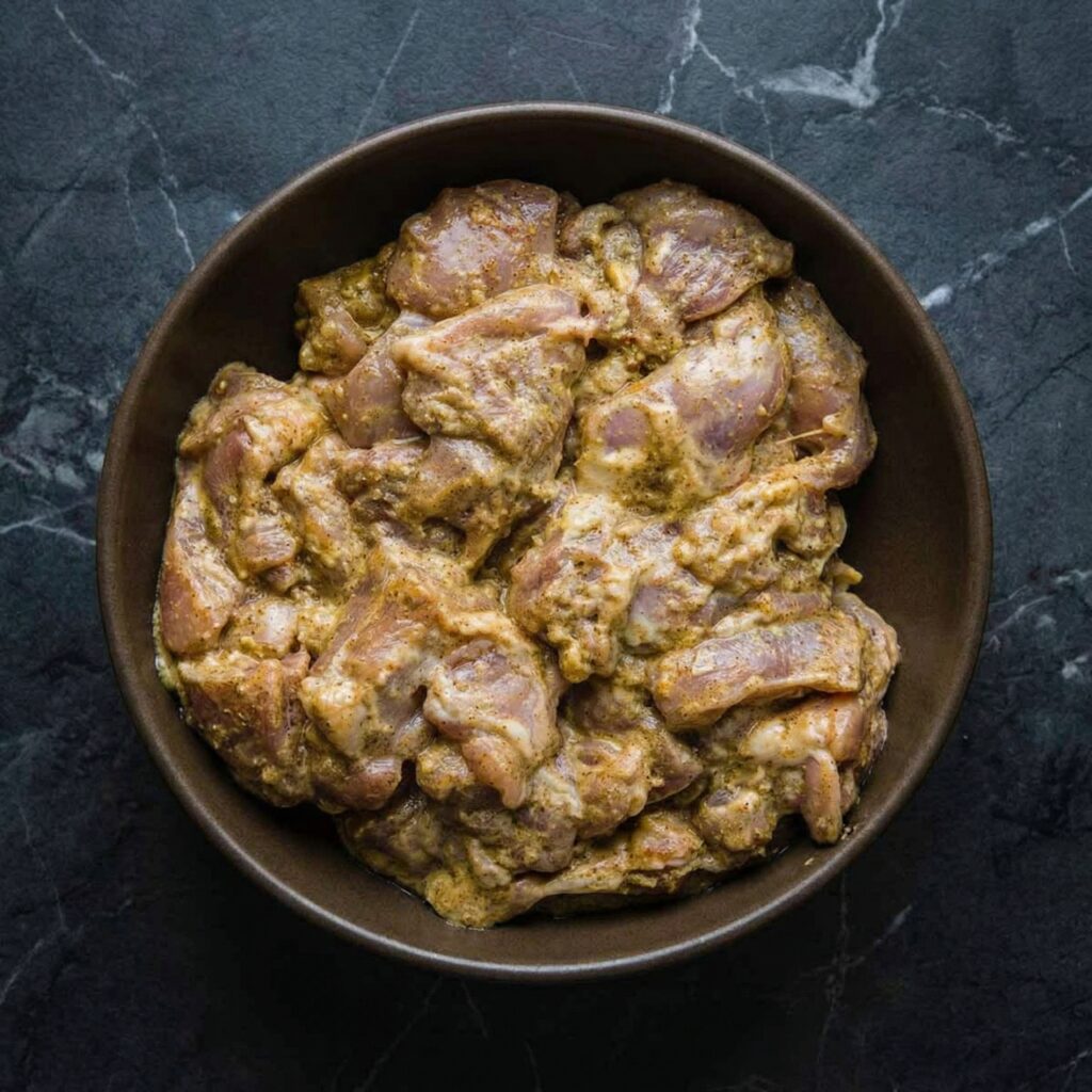 The yogurt tenderizes the chicken while the spices infuse it with deep flavor, setting the foundation for an irresistible dish.