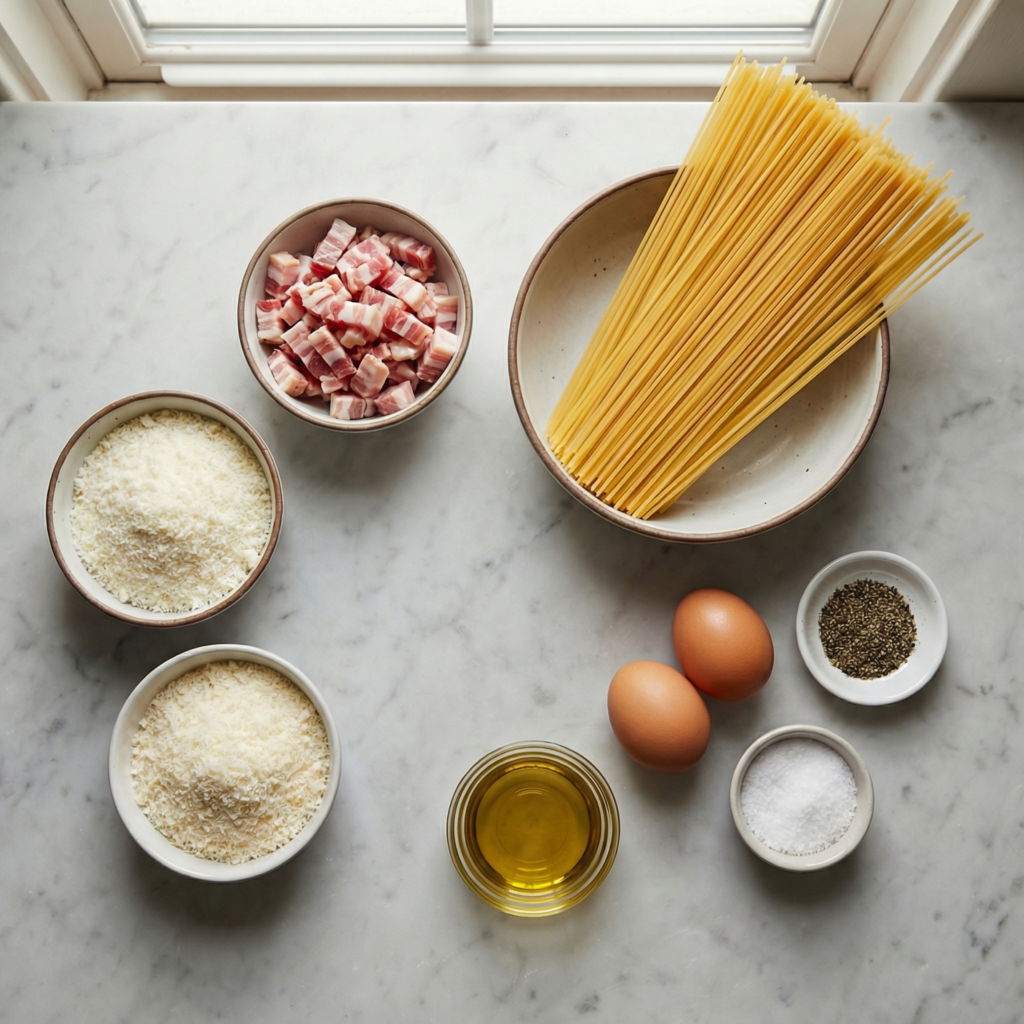 Despite its indulgent flavor, authentic carbonara contains no cream—the magic comes from the emulsion of eggs and cheese with hot pasta.