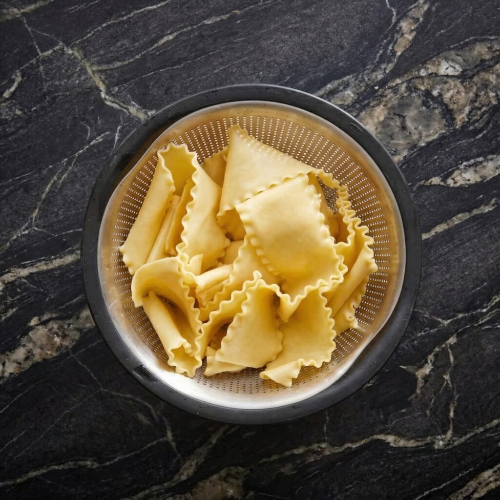 Drain the noodles and lay them flat on a baking sheet or parchment paper to prevent sticking.