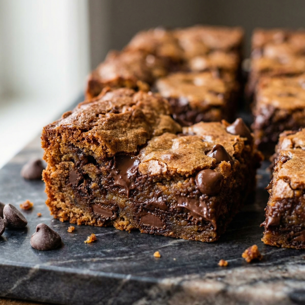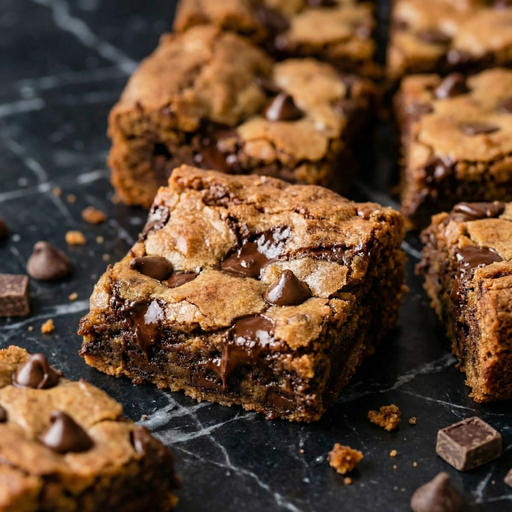 These bars deliver everything you adore about cookies—gooey chocolate, buttery flavor, soft centers, and slightly crisp edges—but in an easy, slice-and-serve form.